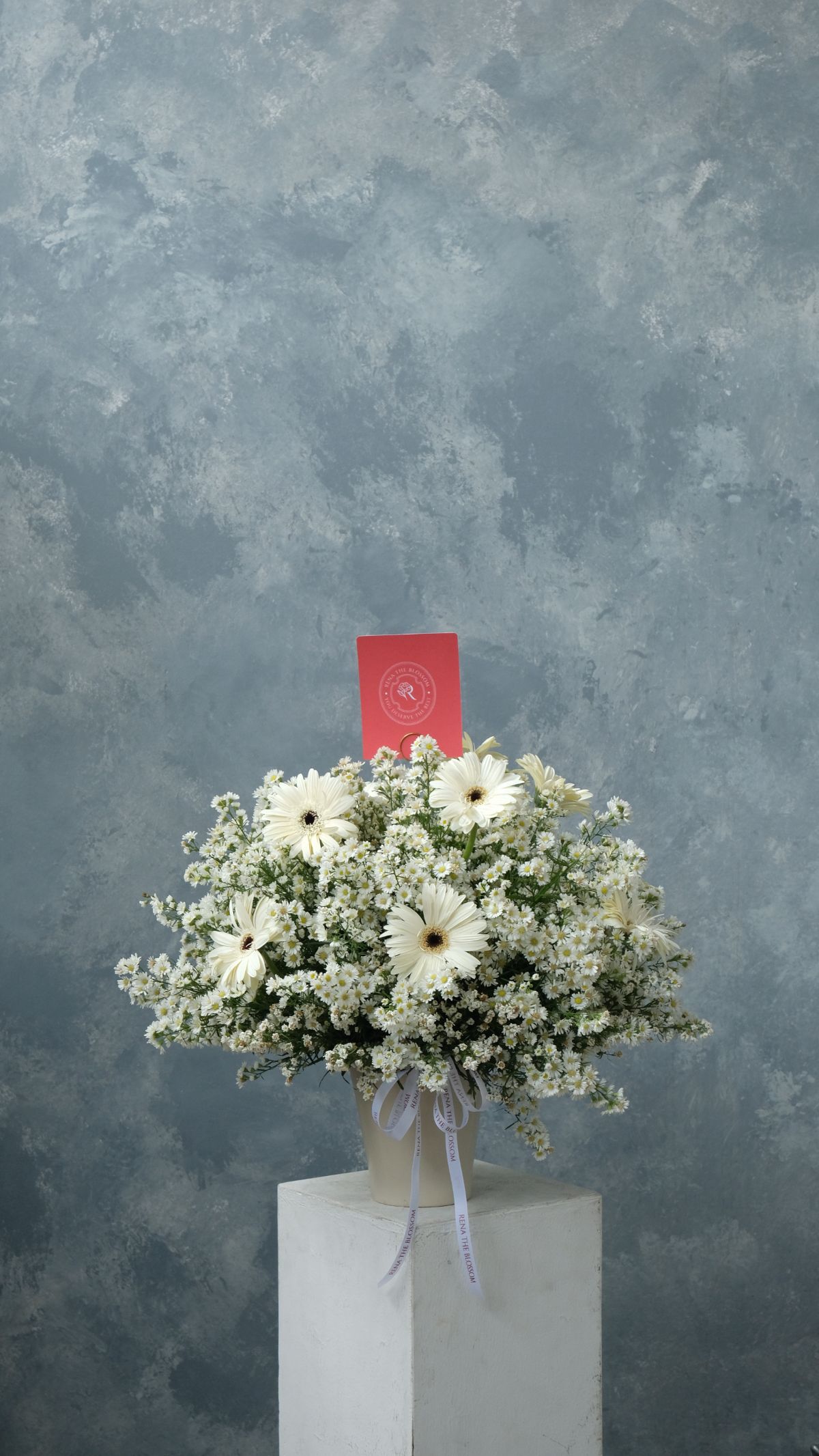 “White pikok and gerbera in a large fresh arrangement — two varieties, one voice, speaking clearly about the beauty of restraint.”